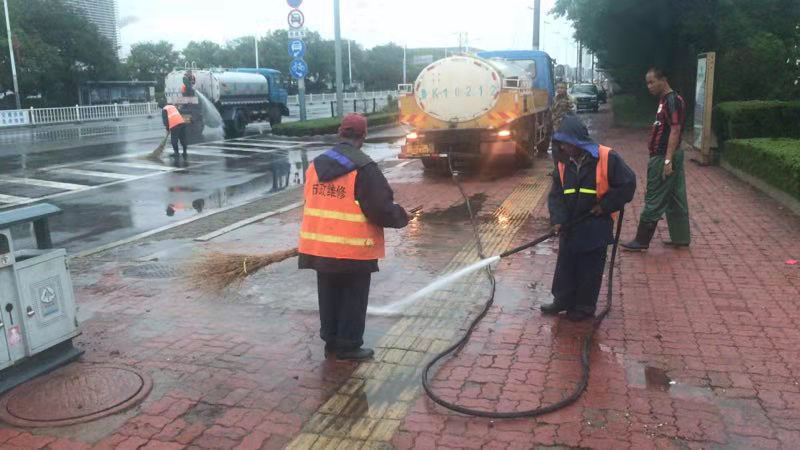 受第9号台风“利奇马”影响,我区多处道路产生大面积淤泥,给居民出行带来诸多不便。为保证出行畅通,市政局坚持领导带班、全员出动、不惧疲劳、坚守岗位,昼夜连轴工作,第一时间组织机械设备和应急队伍,全力开展道路清淤作业,用最快的速度恢复路面整洁。