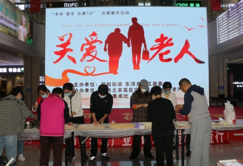 19日上午9点30,在居然之家高新区店一楼中厅,田和街道机关支部的志愿者与东河北社区、居然之家高新区店联合开展“孝老敬老,志愿19”志愿服务活动,包饺子送给社区高龄老人。活动现场,近20名志愿者全都围在长长的桌子前,一溜儿排开,韭菜馅、香菇馅、芹菜馅,馅儿香味十足,包的花样也五花八门。经过2个多小时的分工合作,500多个热气腾腾的饺子一锅接一锅地煮好了。志愿者将冒着热气的饺子分别送给了辖区6户高龄老人家中,87岁的谷永昭拿到饺子尝了一个,“饺子真好吃,感谢街道和社区对我们的关怀!”