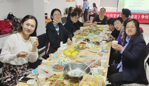 19日中午,华晟社区、洪智社区邀请社区老年朋友们参加社区邻里宴。居民朋友们和志愿者齐坐一堂,熟练地包饺子、下饺子,桌子上摆满了从家中带来的拿手菜品,大家自助用餐,互话家常,品尝彼此厨艺,做小游戏,欣赏网络小品节目和居民的精彩表演,以中国人特有的家宴形式拉近彼此的距离,体味久违的温馨。