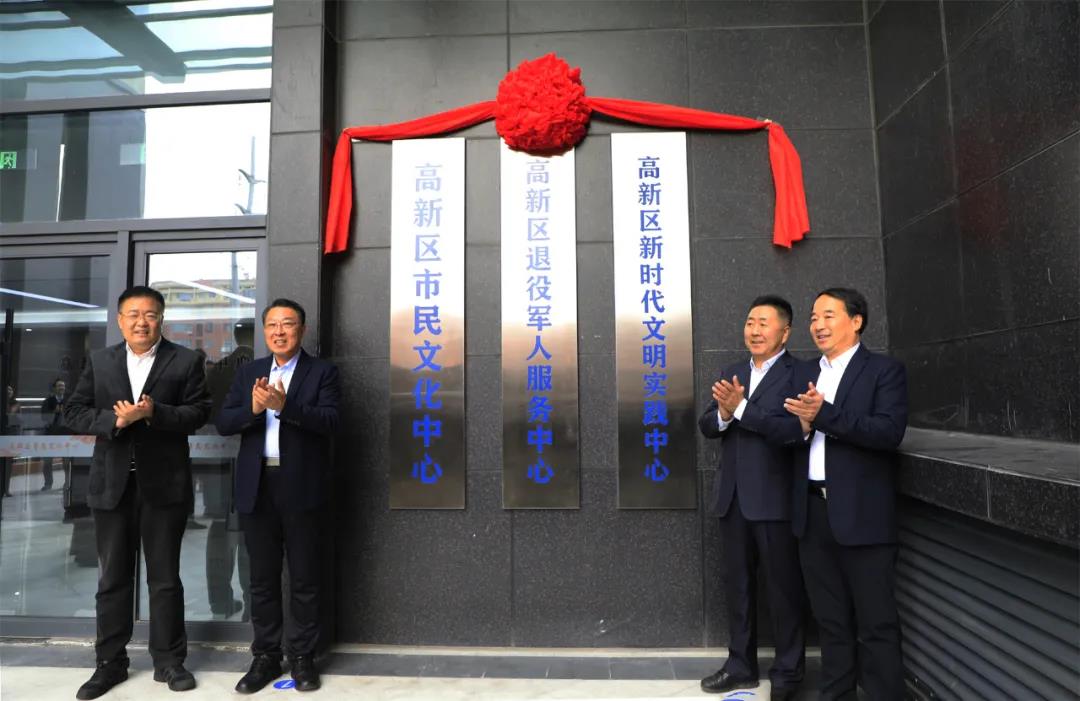 刘伟、赵林、侯成阳、张强共同为高新区市民文化中心、新时代文明实践中心和退役军人服务中心揭牌。高新区注重联通资源,着眼阵地共建、活动共联、队伍共育,打造了“三中心”于一体的文明实践综合体。该综合体位于科技路220号,建筑面积3100平方米,免费向广大市民开放。刘伟要求相关部门树立公共设施“一盘棋”思想,坚持统一管理、统一运营,实现阵地共建、人才共育、资源共享,最大限度方便人民群众。要突出特色、打造亮点,充分发挥一中心多功能,将中心打造成为公共服务大平台、文化汇集新名片、百姓文化生活体验区和文明实践主阵地。