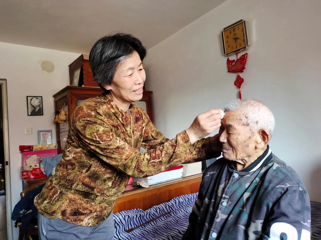 晨曦初露,61岁的陈秀华早早起床为父亲做饭。趁早餐放凉给父亲擦洗身体,白天的闲暇时间用来学习养生知识为父亲精心安排每一顿饭菜。夜晚,帮91岁卧病在床的父亲按摩疼痛的双腿直到父亲安稳入睡,这样忙碌的日子,是生活在华晟社区黄家沟小区陈振山、陈秀华父女俩7000多个日日夜夜的缩影。