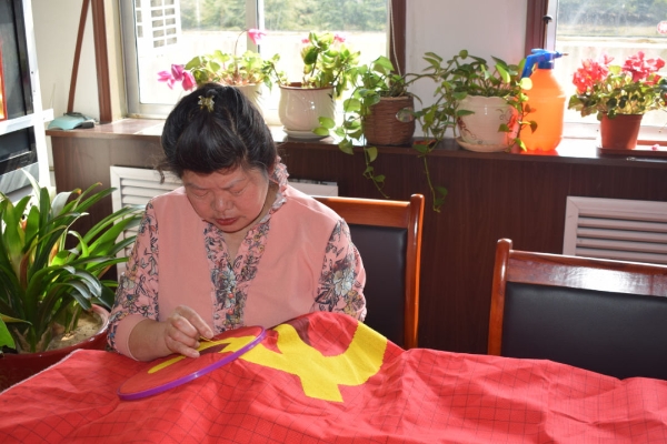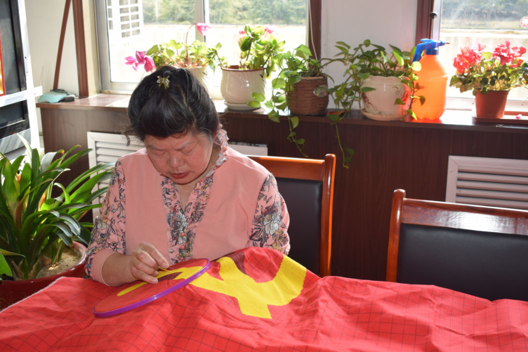 在老电影《江姐》中,江姐和狱中姐妹在牢房中绣红旗表达对党的忠诚;而今在和平美好的时代,村民用刺绣的方式,把对党的满腔热爱凝结在这细密的针线里。“在中国共产党成立100周年之际,我们通过绣党旗这种方式,为党送上一份生日礼物,相信在党的正确领导下,我们的日子一定会越过越好,生活一定会越来越幸福。”佃里院村村民苑淑玉说道。