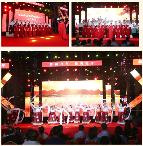 本次演出以“情献百年 和美花开”为主题,12个精彩节目吸引了近千名社区居民现场观看。晚会同时进行现场云直播,数千名观众在线同步收看演出。