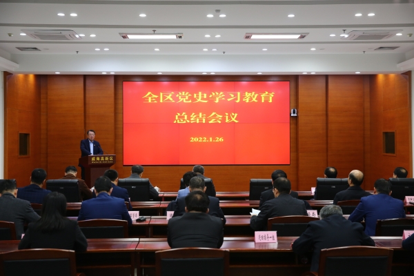 1月26日,全区党史学习教育总结会议召开,深入贯彻习近平总书记重要指示精神,认真落实中央、省、市党史学习教育总结会议精神,全面总结我区党史学习教育成效经验,研究部署巩固拓展党史学习教育成果的思路举措,把学习贯彻党的十九届六中全会精神进一步引向深入。区党工委书记、管委会主任刘伟出席会议并讲话,市委党史学习教育第三巡回指导组组长李建军到会指导,区领导柯学民、张强、于志昂及相关部门、单位负责人参加会议。