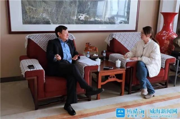 陈学利正在接受Hi威海新闻客户端记者专访