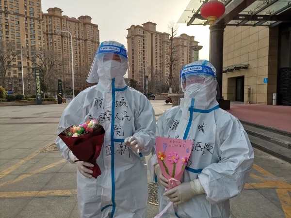 从3月9日以来,来自聊城、德州、潍坊以及荣成、文登、乳山的医护人员纷纷奔赴而来,投入到抗疫工作中。