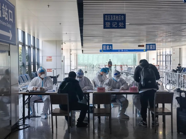 随后,工作人员会根据旅客的目的地所在区,进行分区域引导,各区有专人对旅客相关信息进行详细咨询和登记,同时根据疫情政策进行评判,对于符合条件的旅客,将由防疫保障车辆送至其所属社区。而对于不符合居家隔离条件的旅客,将会被送至隔离点进行隔离。