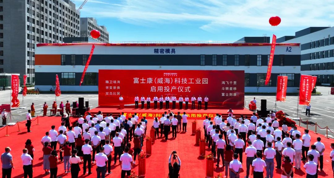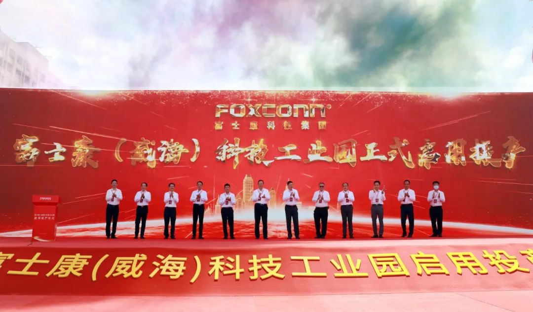 7月15日下午,富士康(威海)科技工业园项目启用投产仪式举行,标志着威海全球打印机基地已集聚了6家世界500强企业。市领导高旭光、孙付春,区领导刘伟、柯学民、张强、兰涛和富士康科技集团商务长崔志成、富士康科技集团D事业群副总经理许孝忠出席投产仪式,高旭光与崔志成一道为富士康(威海)科技工业园生产的第一台打印机揭彩,柯学民、许孝忠致辞。