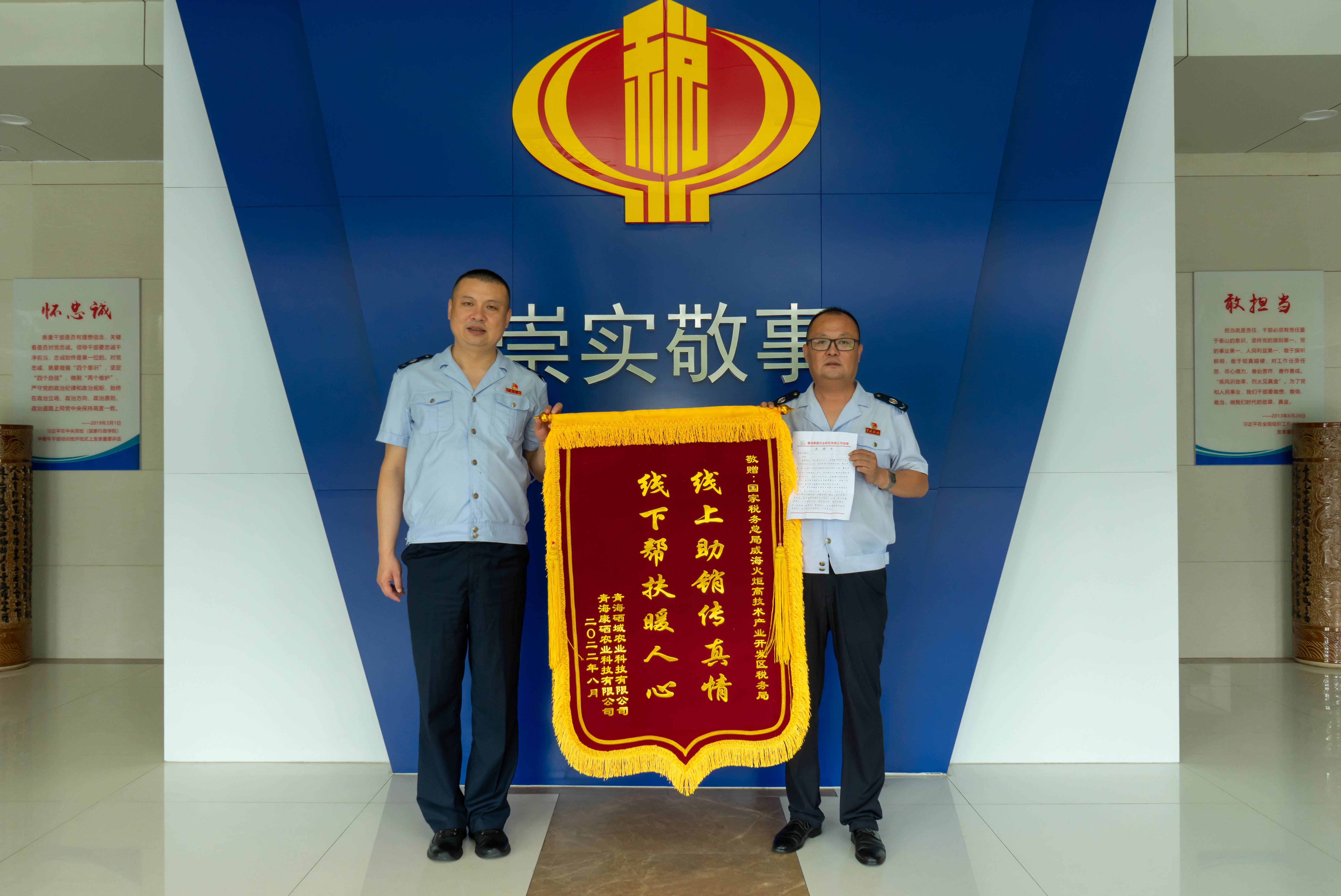 日前,青海康硒农业科技有限公司将一面写着“线上助销传真情 线下帮扶暖人心”的锦旗和一封感谢信,送到区税务局,感谢对脱贫地区的关爱与支持。