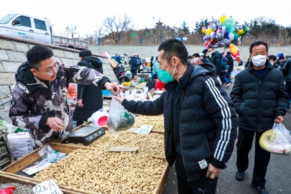 一手提着瓜子、砂糖橘,一手提着羊排、鲜虾,王永平的年货之旅接近尾声。他身后的大集依旧人声鼎沸,秩序井然中洋溢着浓浓年味儿。(曲黎悅 )
