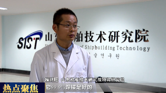 山东船舶技术研究院特聘研究员檀财旺:“这个技术,它从我们实验室的研发走向生产,取决于我们焊接的稳定性,哪怕在实际的生产当中99.9%焊接是好的,0.1%有问题,也会导致我们整个的焊接过程失败。”