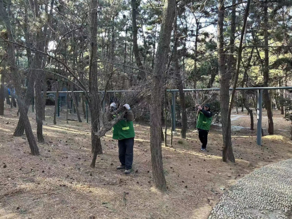 做好修剪整形,在冬季整形修剪的基础上进行复剪,去除干枯枝、衰弱枝、病虫枝,美化树形,调整树势,确保树木良好的生长态势及景观效果。做好绿地保洁,彻底清理绿地内枯枝败叶、杂草杂物、石头瓦块、树挂垃圾等,保持绿地内干净整洁、清新美观。做好病害防控,根据各种病虫害的发生规律和繁殖习性,安排专人观察、监测预报,制定防治方案,做到治早、治小,防止病虫害“闹腾”,保障绿化苗木健康生长,切实维护绿化成果。做好设施维护,集中对绿地设施进行“健康体检”,把脉问诊设施“健康状况”,对症下药“治病疗伤”,确保绿地设施完好、安全运行。做好苗木补植,提前谋划,全面摸排,精准掌握各路段、公园、游园、广场等绿植缺失情况,抢抓补植时机,分步实施开展,全力消除缺株断档、地被斑秃、黄土裸露等现象。做好春灌追肥,根据多变气候,及时对绿地苗木足量补水,科学合理施肥,确保绿化苗木水肥供应充足,同时配合松土、整地等养护措施,增进土壤蓄水保墒,增加土壤透气性,促进苗木吐青返绿。