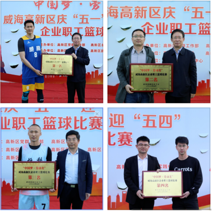 5月12日下午,随着裁判吹响最后一场比赛终场的哨声,历时18天的高新区“中国梦·劳动美”2023年企业职工篮球比赛圆满落下帷幕。经过激烈比拼,威高集团代表队摘得冠军,富士康威海科技园代表队获得亚军,恒科精工代表队、光威复材代表队分别获得第三名、第四名。联桥集团、双丰集团、东兴电子、克莱特风机等4支代表队获得并列第五名。