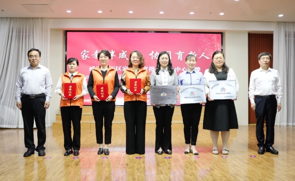 仪式上,高新区家庭教育指导服务中心揭牌,并为示范社区家长学校代表和家庭教育先进个人代表颁发了奖牌。