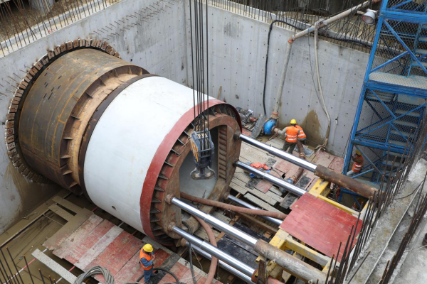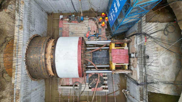 本标段工程存在一座始发井、一座接收井,现场准备工作均已完成。上午9:00,在区建设局、高新控股、施工及监理单位的共同调度见证下,顶管施工顺利启动。管材外径为4.72米,单根重量32吨,需采用300吨级吊车完成38根过程管材安放,预计6月6日前完成所有管材铺设。