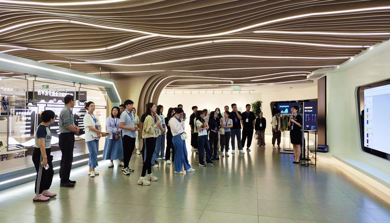 在迪尚集团,企业负责人向媒体着重介绍了企业整合资源优势打造的国内首家纺织服务垂直生态链平台。在企业负责人的演示下,媒体记者沉浸式了解了一件服装从设计、选料、打样,再到生产成衣的全过程,高度的数字化给在场所有媒体记者留下了深刻印象。