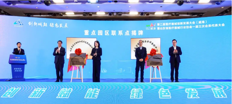 会上,还为“山东省医疗器械和药品包装检验研究院重点园区联系点”“山东省食品药品审评查验中心重点园区联系点”揭牌。联系点将瞄准企业需求,延伸服务触角,真正让检验、审评走在研发的前端,推动资源共享、信息互通,为医疗器械企业提供更便捷、高效的服务。