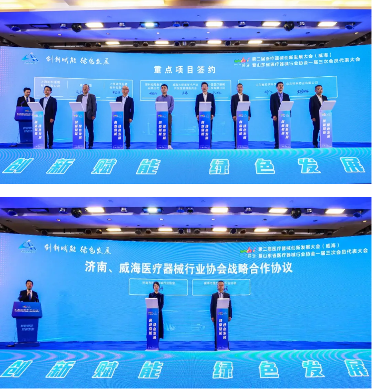 重点项目签约环节,高区管委与博科控股集团有限公司、中国医疗器械山东有限公司签约。威高集团与上海珀利医用材料有限公司、上海浦茂包装材料有限公司签约。同时,我市医疗器械行业协会与济南市医疗器械行业协会签署战略合作协议,双方将以推动跨区域合作为主线,聚焦创新,协同发展,全面提升企业科研能力,助力各会员单位建立“全产业链条”,共同为医疗器械企业创新发展“赋能”。