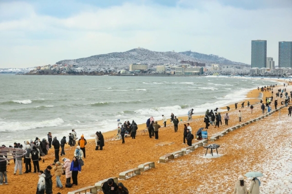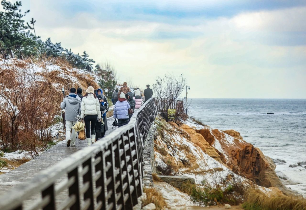 当雪花遇见山海,漫天飞舞的雪花,永不失约的冬日之海,都让冬季的威海充满诗意与浪漫。海岸边、沙滩上也藏着纯净而惊艳的美景,造就了暖冬里治愈的风光。