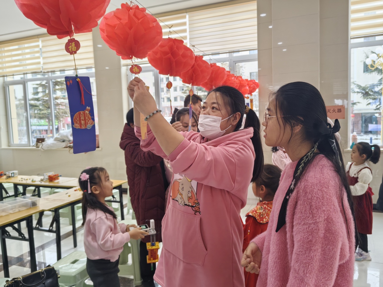 “这个怎么拼啊?”“瞧!我做的灯笼最好看!”通过认真地剪裁、拼接,不一会儿,一盏盏漂亮的红灯笼就完成了,孩子们纷纷举起自己的灯笼合照留念,稚嫩的脸上洋溢着灿烂的笑容,整个场面既热闹又温馨。