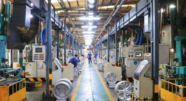 “由于电池的存在,新能源汽车往往比燃油车重。为此,我们在低压铸造工序后,增加了一道旋压工序,把轮毂从厚度20多毫米左右旋压到8毫米左右,增强轮毂结构的密度从而提高载重。”郑会光说,目前产品主要配套大众、通用、奇瑞等国内重点汽车厂家,订单已排到2025年。
