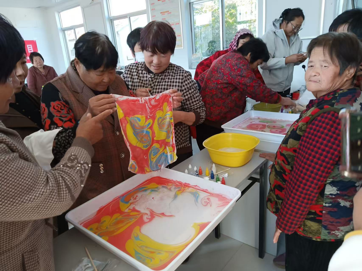 初村镇以“重阳‘艾’意浓”为主题,将非遗文化与健康关怀相结合,为老年人带来别具特色的节日体验。在东南村“银发聚重阳,巧制养生锤”活动中,老人们亲手制作艾草养生锤,在艾草清香中感受传统养生智慧;西南村的“重阳添艾意,枕护夕阳红”活动,则通过制作艾草颈椎枕,为老人送上实用又贴心的健康礼。小产村的“重阳邻里嘉年华”更是热闹非凡,套圈、投壶等传统游戏让长者重拾童趣,非遗水拓丝巾制作则让老人们惊叹于传统技艺的精妙,在互动中拉近了邻里距离。
