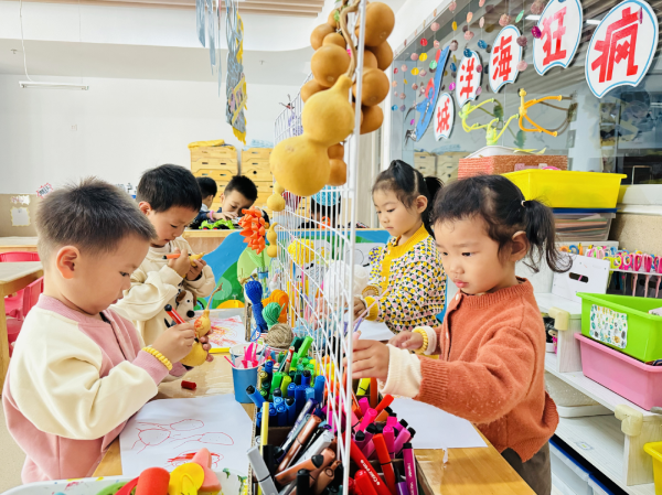 在美工区、表演区引导幼儿进行海洋主题艺术创作与情景剧编排,让“和谐”“友善”等核心价值观在美的创造与表达中升华。