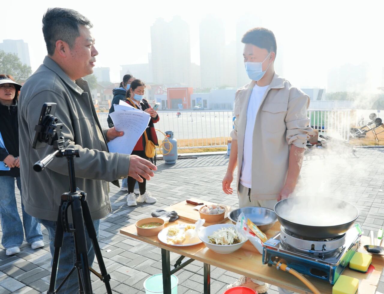 “百姓厨神”大赛现场,气氛紧张而热烈。来自各社区的烹饪高手们分设“家常风味组”与“创意精英组”两个赛道,纷纷亮出看家本领。灶台前,选手们煎炒烹炸、动作娴熟;空气中,诱人的饭菜香交织成最动人的生活交响。评委们认真品评,从味道、创意、呈现三个维度严谨打分。