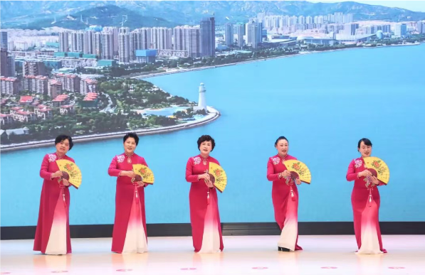 展演在热烈的气氛中拉开帷幕,节目单犹如一幅徐徐展开的社区生活风情画。从银杏社区舞蹈队深情演绎的《我的祖国》,到田东社区田和精武团队虎虎生风的八段锦《战鼓》;从西河北社区“无忧女神队”展现自信风采的旗袍走秀,到古寨社区夕阳红模特队温暖演绎岁月同行的《搀扶》……30余个形式多样、情感真挚的节目接连上演。这些节目全部来源于街道各社区孵化的文艺自组织,演员们既是舞台上的明星,也是社区里热心的邻居、志愿者和“主理人”。特别值得一提的是,柴峰社区和乐芳华国画队将现场作画与男女对唱《荷包情缘》创新结合,笔墨丹青与悠扬歌声交织,生动诠释了社区文化“活起来”的无限创意。