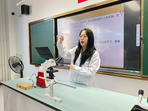 除了AI赋能教研,高区还着力推进理化生实验室及设备更新。在山大实验学校的生物实验室里,一场生动的细胞观察课正在进行。教师显微镜下的画面通过新设备实时投屏至智慧黑板,边讲解边操作,清晰的图像让学生们对细胞结构一目了然。学生们先观察演示再动手操作,进一步规范了流程、理解了原理,实验效率和效果大幅提升。