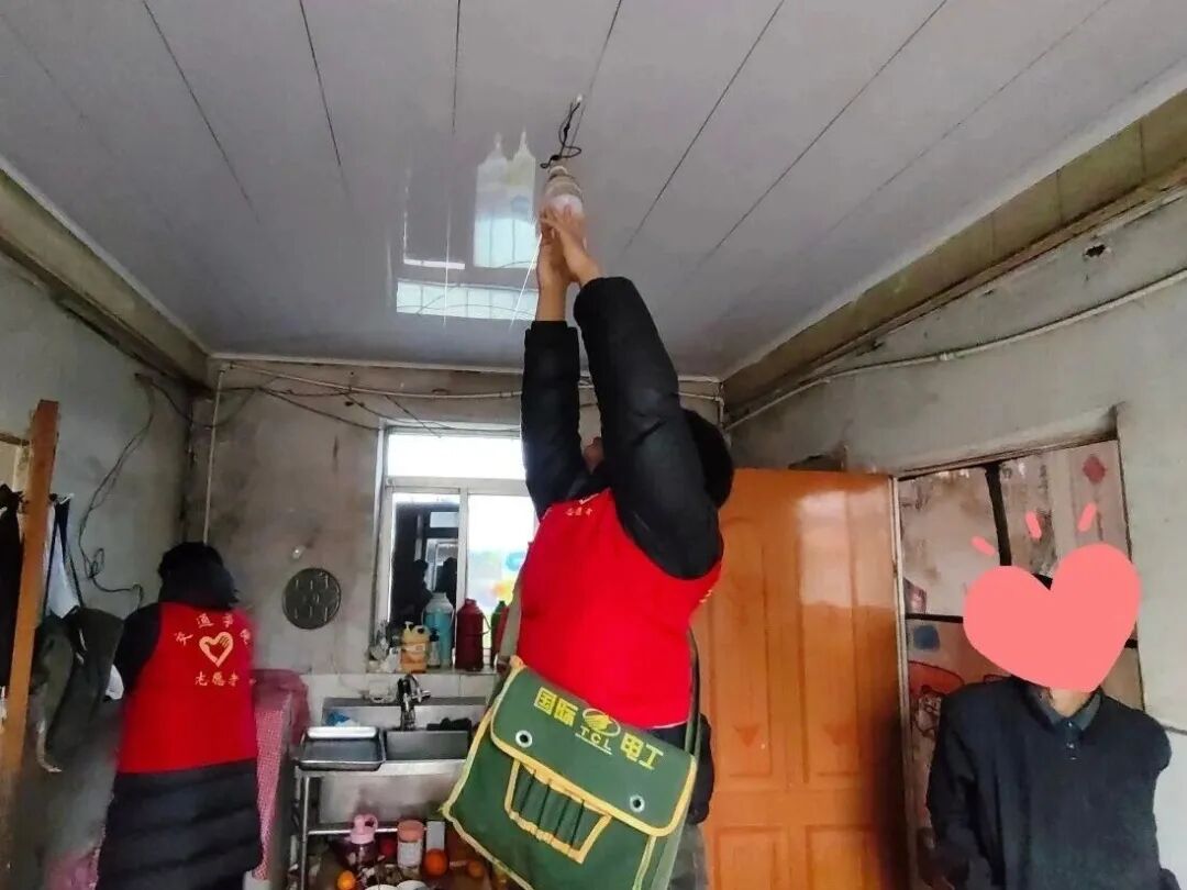 “大爷,这个电线破损了,我帮您换个新的,以后要注意经常检查一下。”“这个窗户插销松动了,现在修好了,平时也要注意每天通风,避免一氧化碳中毒。”