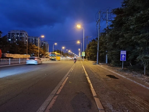 与此同时,针对蓝海路、昊山路、锦山路部分路段因线路老化出现亮度减弱等问题也进行了同步维修。20多天后,顺利完成了6600多米电缆的开挖、铺设及路灯调试工作,重新迎来明亮夜色。