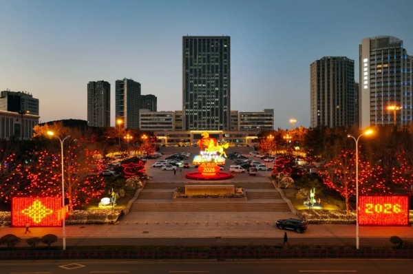 高新广场以“花跃双骏”主题景观为视觉核心,打造出兼具寓意与美感的新春打卡地。饱满的花篮造型,象征五谷丰登、富足安康;奔腾的双马雕塑,寓意奋进争先、前程似锦。传统节庆祥瑞与高区高质量发展愿景深度绑定,既传递对市民的新春纳福祝愿,也更彰显高区建设优质均衡高质量发展先行示范区的坚定步伐。广场内,去年广受好评的“璀璨灯墙”“幻海灯集”“海语生灵”等成品灯饰,经检修翻新后再度亮相。红灯笼错落挂枝,灯串缠绕树干,造型灯饰点缀草坪,形成层次分明的立体景观。白日里,格调雅致,是市民定格新春的热门点位;夜幕下,流光溢彩,成为点亮夜色的视觉焦点。