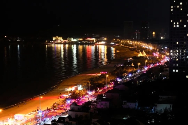 网红地标火炬八街片区,延续原有亮化基调,在保留原有风格的基础上,进行优化升级。夜幕降临,多彩灯光与滨海风光、特色商铺相映成景。既唤醒了街区的新春活力,也勾勒出兼具滨海风情与节日韵味的夜游动线,成为市民游客打卡留念的优选之地。