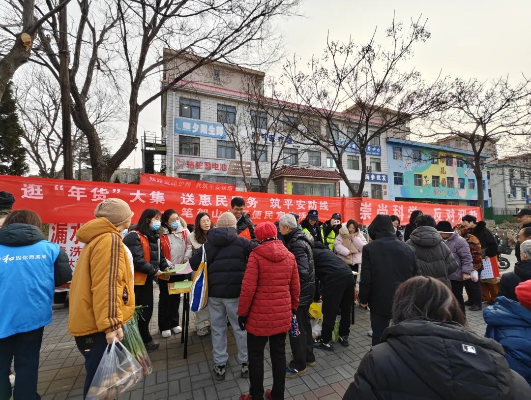 年关将至,年味渐浓,近日,笔架山社区携手区政法工作部、田和街道办事处、威海市高铁护路巡查大队和公安系统,共同开展“逛‘年货’大集 送惠民服务 筑平安防线”便民宣传活动,将政策宣传、安全科普与便民服务打包成特殊“年货”,送到居民手里,让大家在备年货、迎新春的喜悦中,收获满满的安全感与幸福感。