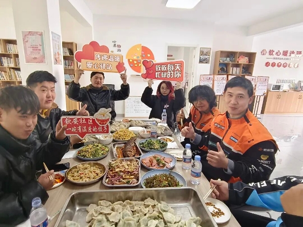 此次参与活动的外卖骑手,均是骑先锋志愿服务队的成员。过去一年,他们穿梭在社区街巷,不仅是便民服务的“配送员”,更是社区治理的“志愿者”,主动参与社区巡逻、文明劝导、便民帮扶等志愿服务,用行动守护社区和谐。活动现场,街道工作人员备好热气腾腾的饺子和丰盛菜肴,骑手们卸下忙碌,围坐畅谈,在欢声笑语中感受暖新温度,舒缓奔波疲惫。