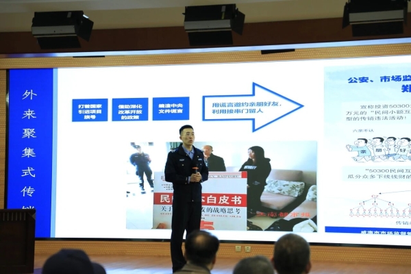 活动中,民警结合本地经济犯罪发案形势,重点围绕新型涉众型犯罪的特点、类型及防范要点进行讲解。通过真实案例剖析、面对面交流互动等方式,详细介绍了集资诈骗和传销的常见手段、作案特点及犯罪伎俩,向职工普及防骗知识和防范技能。