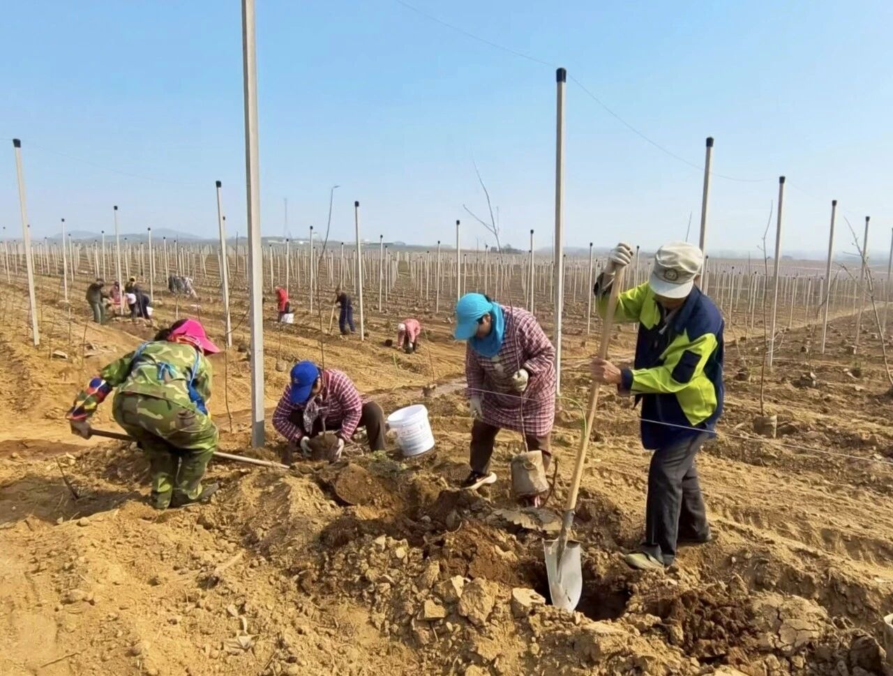 走进五十一号农场,工人们紧张而有序地忙碌着,挖坑、放苗、覆土、踩实、浇水,各项工作井然有序、一气呵成。为见证果园的“蝶变”时刻,不少经销商也从全国各地赶来,和工人们一起,栽下新树苗,期待新收获。