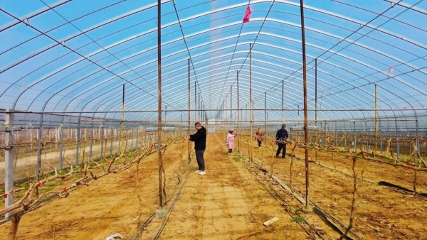 走进葡萄种植大棚,工人们正忙着栽种、施肥、回填,一派忙碌景象。“大棚种植能让葡萄错峰上市,提高经济效益,同时也方便游客前来体验采摘乐趣,带动乡村旅游发展,所以今年我们增加了大棚种植面积。”迟皓中说。