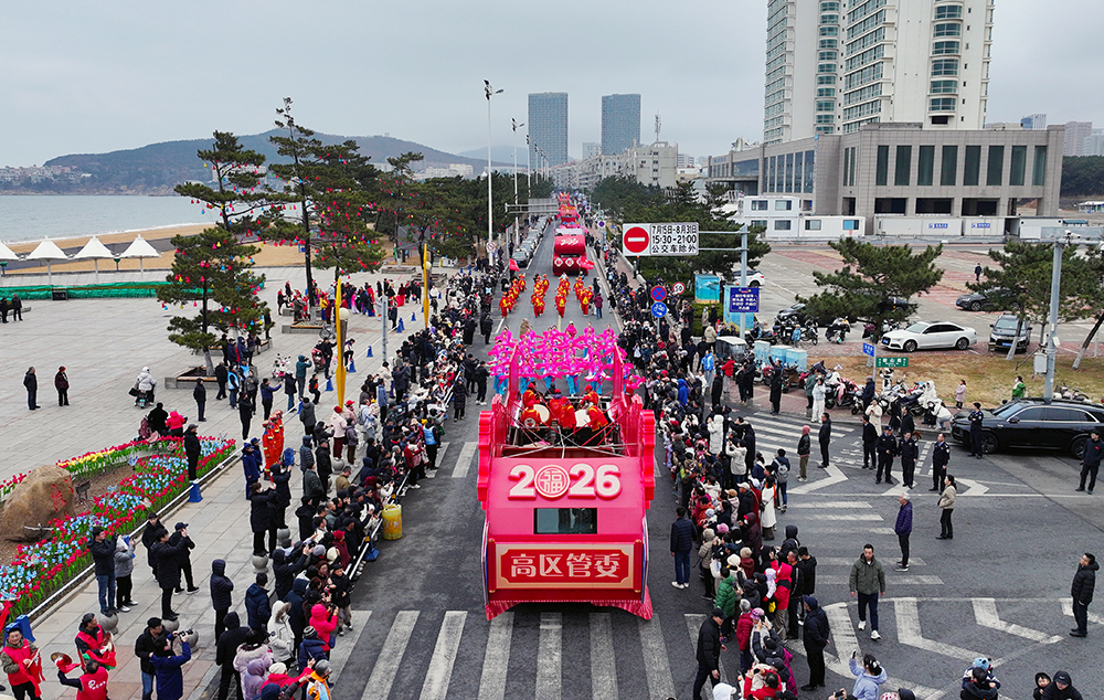 本次活动采用“群众展演+花车巡游”分段行进模式。群众展演沿国际海水浴场东侧—大白帆广场—火炬八街—火炬八街西街广场—夜肆威海广场精品文旅线路展开,沿途设置大白帆广场、火炬八街北路口、火炬八街西街广场、火炬八街西街入口四处展演点,方便市民近距离观赏互动。展演结束后,花车沿文化路、利群商场、体育场、大润发、世昌大道、欧乐坊等城市主干道巡游,将祥和氛围与城市烟火气传递到千家万户。