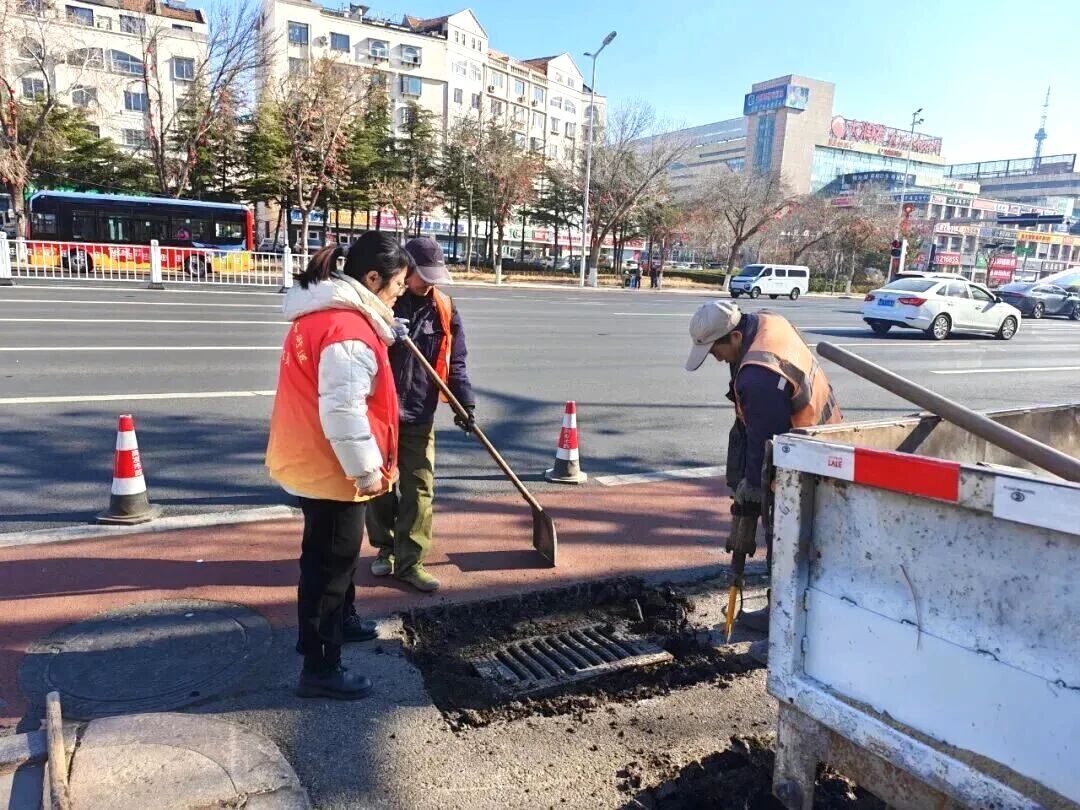 小区环境焕新颜,街头巷尾的细微改善同样暖人心。不久前,寨子游园东侧路口一处雨水箅子周边路面发生塌陷开裂,形成较深缝隙,存在明显安全隐患。大槐树社区工作人员在日常巡查中第一时间发现险情,迅速设置警示锥围挡现场,通过社区微信群及时发布安全提醒,并同步对接市政工程部门详细上报隐患点位。次日一早,市政维修队伍赶赴现场,开展围挡布设、破损篦子拆除、淤泥碎石清理等作业。施工期间,社区人员主动协助维持交通秩序,提醒过往行人车辆绕行。经过四个多小时紧张施工,路面重新夯实平整,全新雨水箅子安装到位,安全隐患彻底消除。