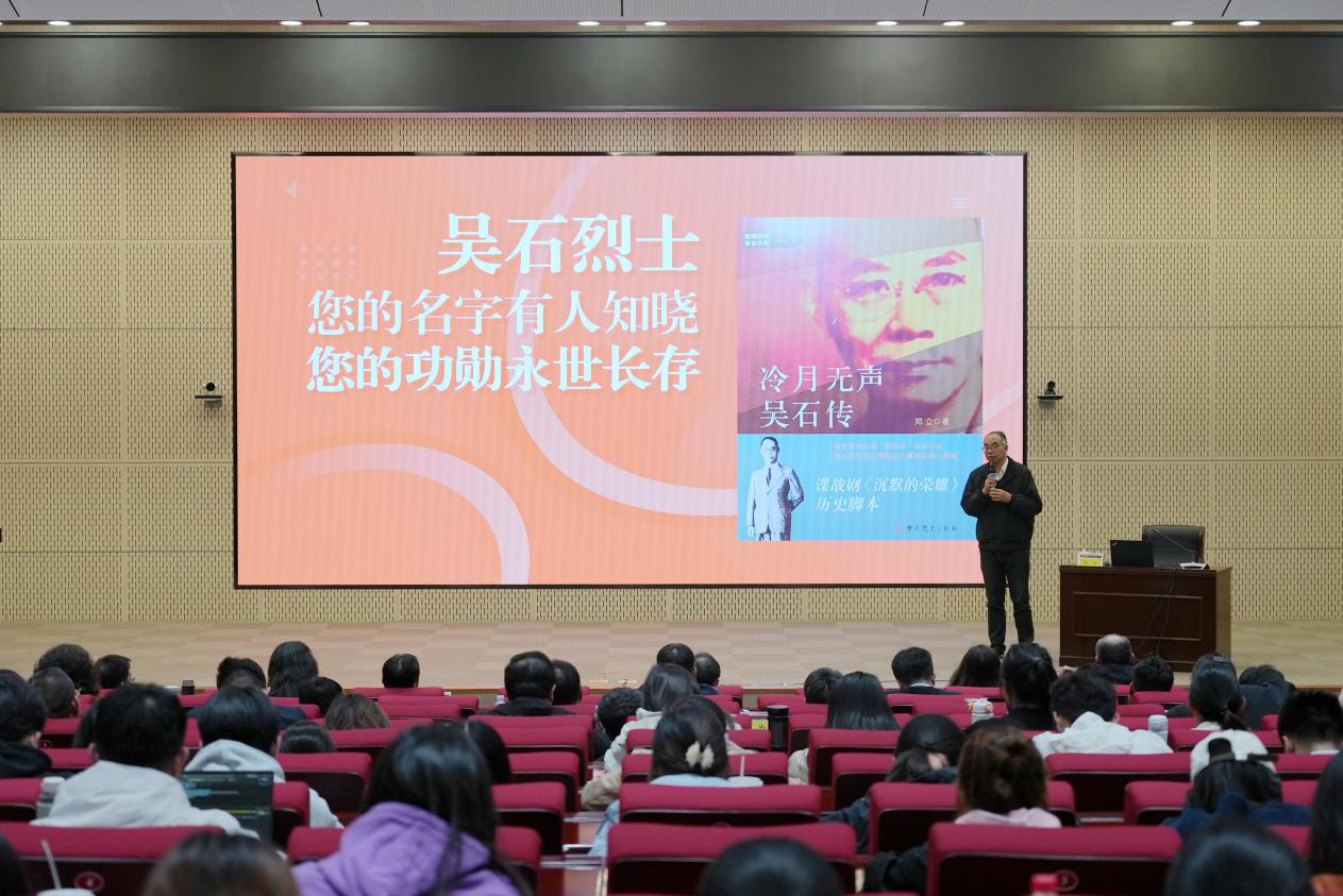 山东大学(威海)邀请电视剧《沉默的荣耀》史实顾问、著名党史学者郑立先生走进校园,为师生带来隐蔽战线英雄史专题报告。报告中,郑立先生以吴石将军等英雄人物为主线,结合珍贵史料与真实案例,回溯无名先烈忠诚报国的奋斗历程,以鲜活的故事代替刻板说教,引导青年学子读懂家国担当,从革命历史中汲取精神力量,将爱国情怀转化为勤学实干、矢志报国的行动自觉。