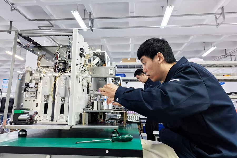 “大至整机结构设计、核心传感器研发,小至一枚精密零部件、一套系统软件程序,均为企业自主研发打造,全过程实现国产化。”谢凡介绍,企业拳头产品全自动血小板聚集仪,为全球首台全自动血小板检测设备,彻底颠覆行业半自动、手工操作模式。