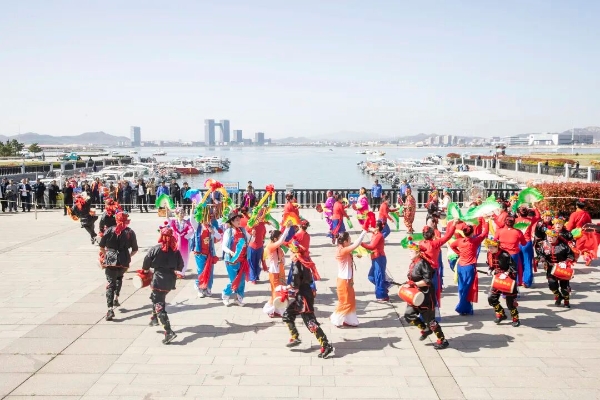 上午9:00,伴随“初彩”秧歌队的精彩开场,展演活动正式拉开帷幕。彼时双岛湾碧波荡漾,青山叠翠与澄澈海景交相辉映,以山海为幕,队员们身着色彩艳丽的服饰,手持彩扇、踏着节拍,舞步灵动、笑容灿烂,将秧歌的热情奔放与民俗风情演绎得惟妙惟肖,欢快的节奏、优美的舞姿,赢得了现场观众阵阵热烈的掌声和欢呼声。