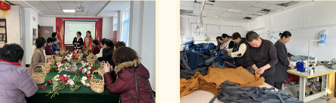 董红岩是“才乐坊”的老成员,提起如今的创业环境,她满心感激:“以前在草厦子加工,空间狭小、光线昏暗,还有安全隐患,干活总不踏实。现在社区免费给我们提供了宽敞明亮的场地,配齐了操作台、储物柜,还制定了安全管理制度,让我们既能安心赚钱,也能感受到社区的关怀。”