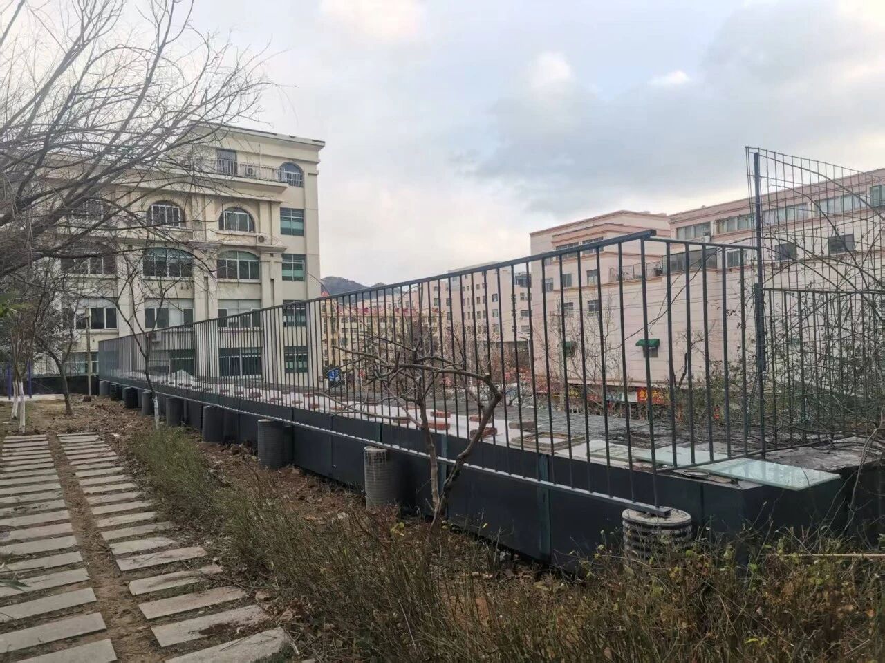 桃园社区文化名居小区西门护栏存在多处锈蚀断裂、焊点脱落问题,部分护栏松动摇晃,不仅严重威胁居民人身安全,也影响小区整体环境面貌,成为群众急盼解决的 “烦心事”。