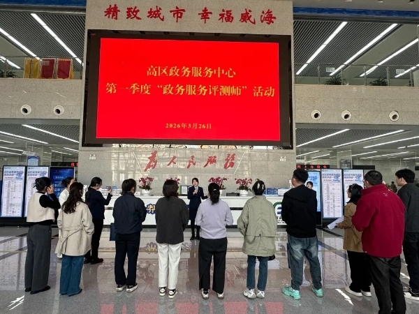 日前,高区政务服务中心2026年首场政务服务评测师活动火热开启。本次活动以“智慧政务”为主线,邀请企业群众代表10余人走进大厅,通过“线下沉浸式体验+线上同步直播”的方式,全方位感受智慧政务带来的便捷与高效。